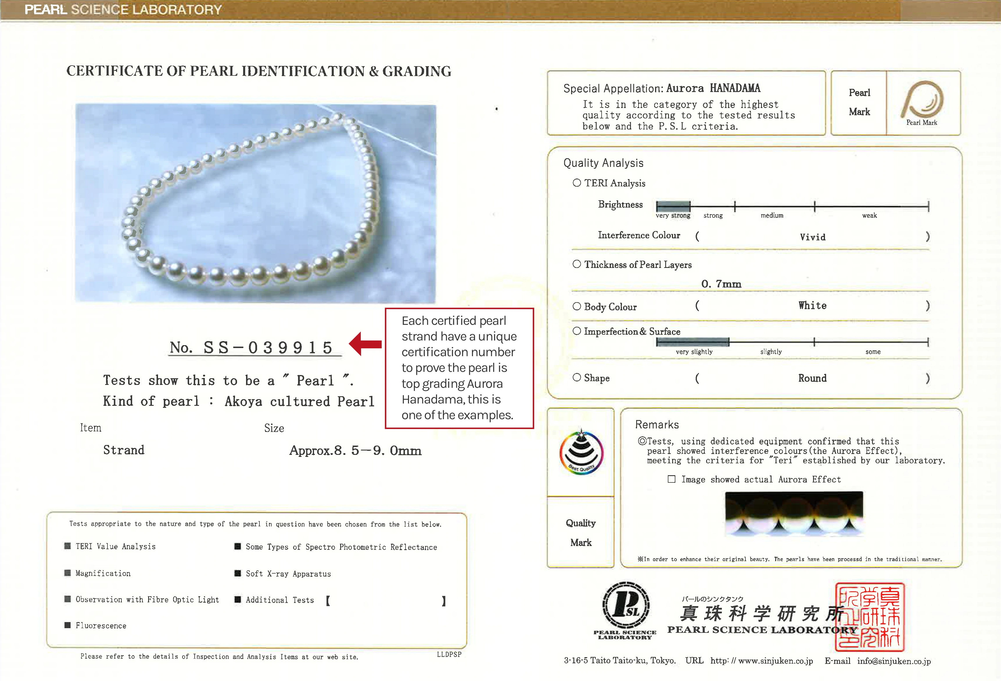 Our Pearls are Handpicked from the seas and lakes of Japan.Gemological Institute of America pearl identification examination done in New York.We guarantee all our product used 100% Genuine Pearl.